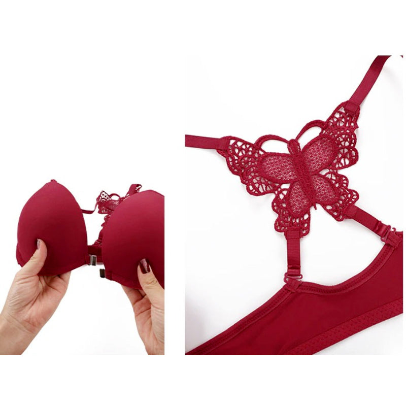 Elegant Butterfly Back Front-Closure Push-Up Bra & Panty Set for Women – Comfortable Everyday Lingerie